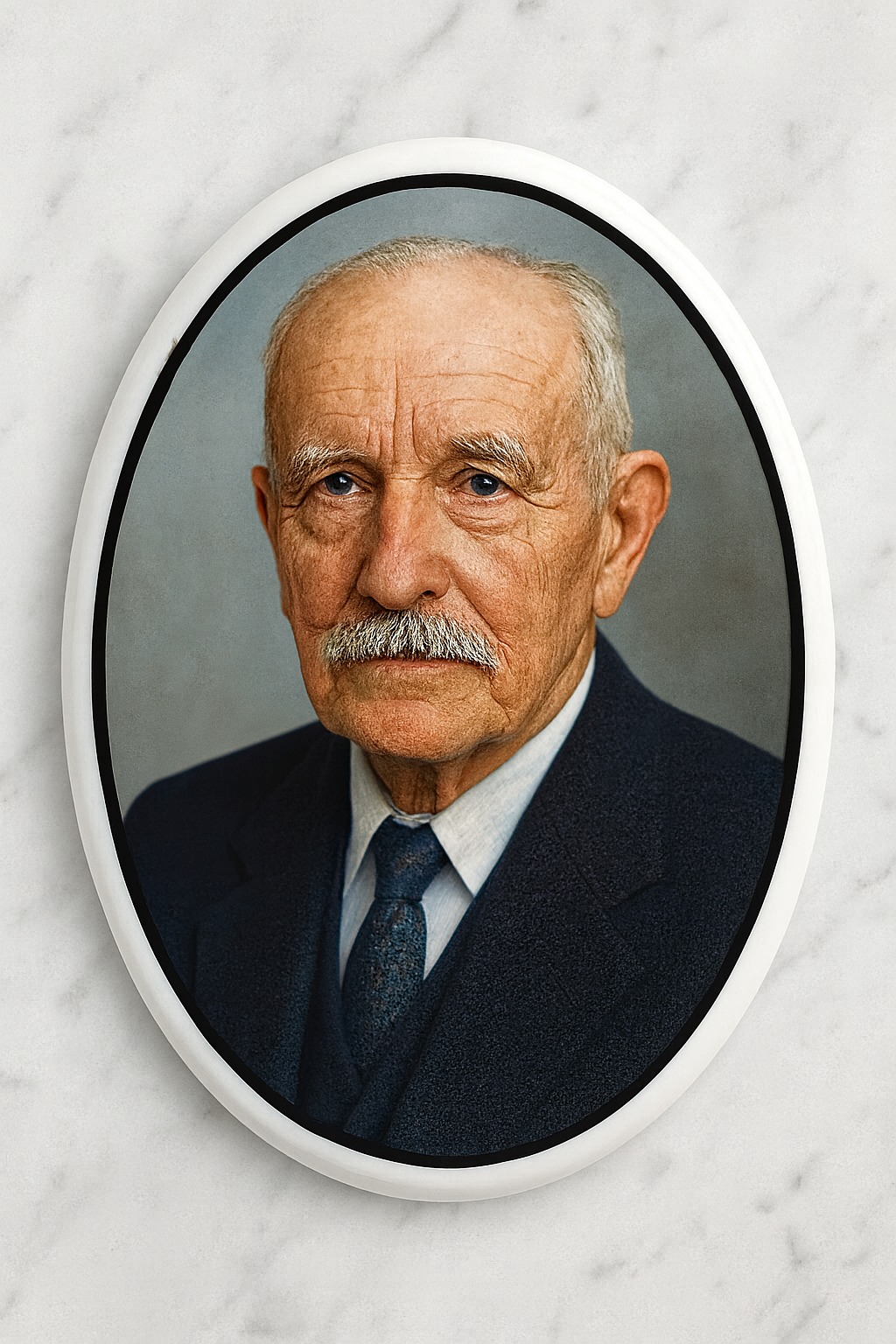 Fotoceramika nagrobkowa 7×9 cm, owalna, z czarnym paskiem, nadruk kolorowy. Odporna na warunki atmosferyczne, przeznaczona do zastosowań zewnętrznych.