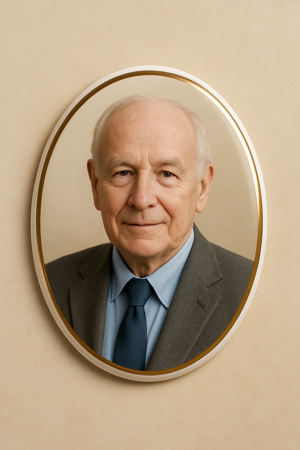Fotoceramika nagrobkowa 8×11 cm, owalna, ze złotym paskiem, nadruk kolorowy. Odporna na warunki atmosferyczne, przeznaczona do zastosowań zewnętrznych.